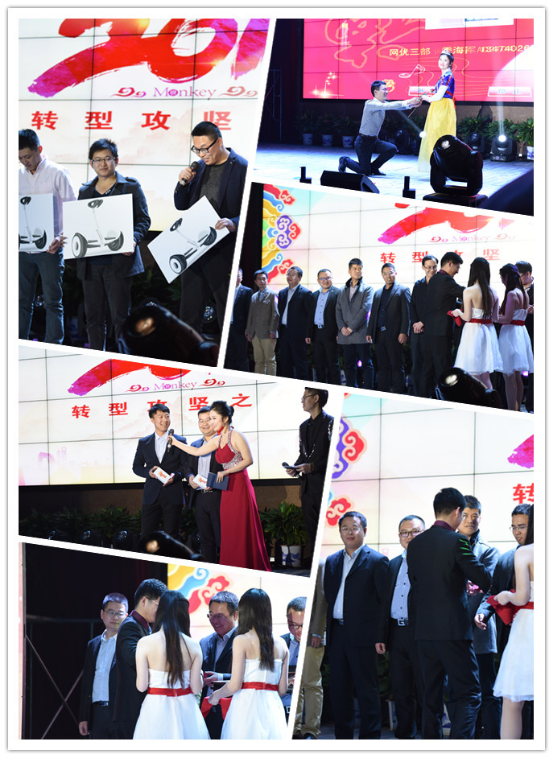 此次年會開創了不同于以往的新形式,全場劃分為紅、橙、藍、綠以及七彩這五個方陣,每個方陣配有一名方陣主持人,以達到舞臺上下的伙伴們同歡樂,共盡興的效果。舞臺上,絢麗繽紛的燈光勾勒出表演者們自信的輪廓;舞臺下,五顏六色的熒光棒揮舞出演唱會般的動感節奏,真可謂默契非凡,相得益彰。