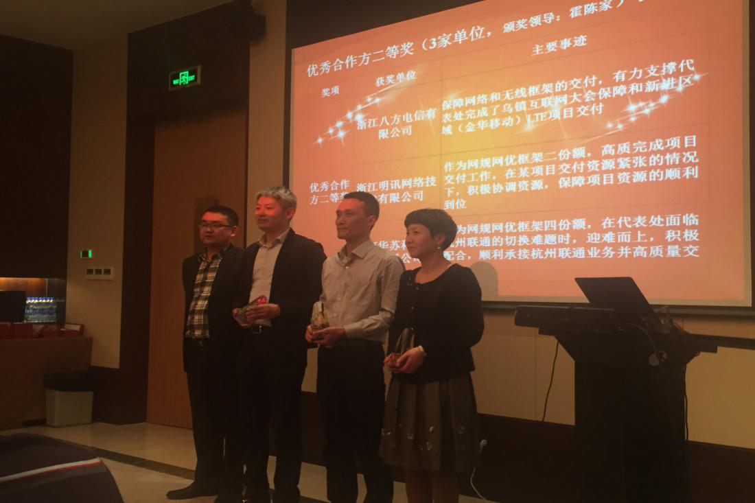 本次會議根據(jù)合作方的交付質(zhì)量、對客戶滿意度的的調(diào)查以及合作資源認證率等方面對各個合作方做出了中肯切實的評價,其中,華蘇科技 不負華為代表處對合作方的殷殷期待,以其杰出的綜合表現(xiàn)獲得了“2015年度華為公司杭州代表處優(yōu)秀合作伙伴二等獎”的殊榮,同時還受到了“面對難題,迎難而上,積極配合,交付質(zhì)量高”的良好評價。這是對華蘇2015年付出的所有努力的最好認可,同時也激發(fā)了我們在2016年更要長風破浪、攜手共進的決心和動力。