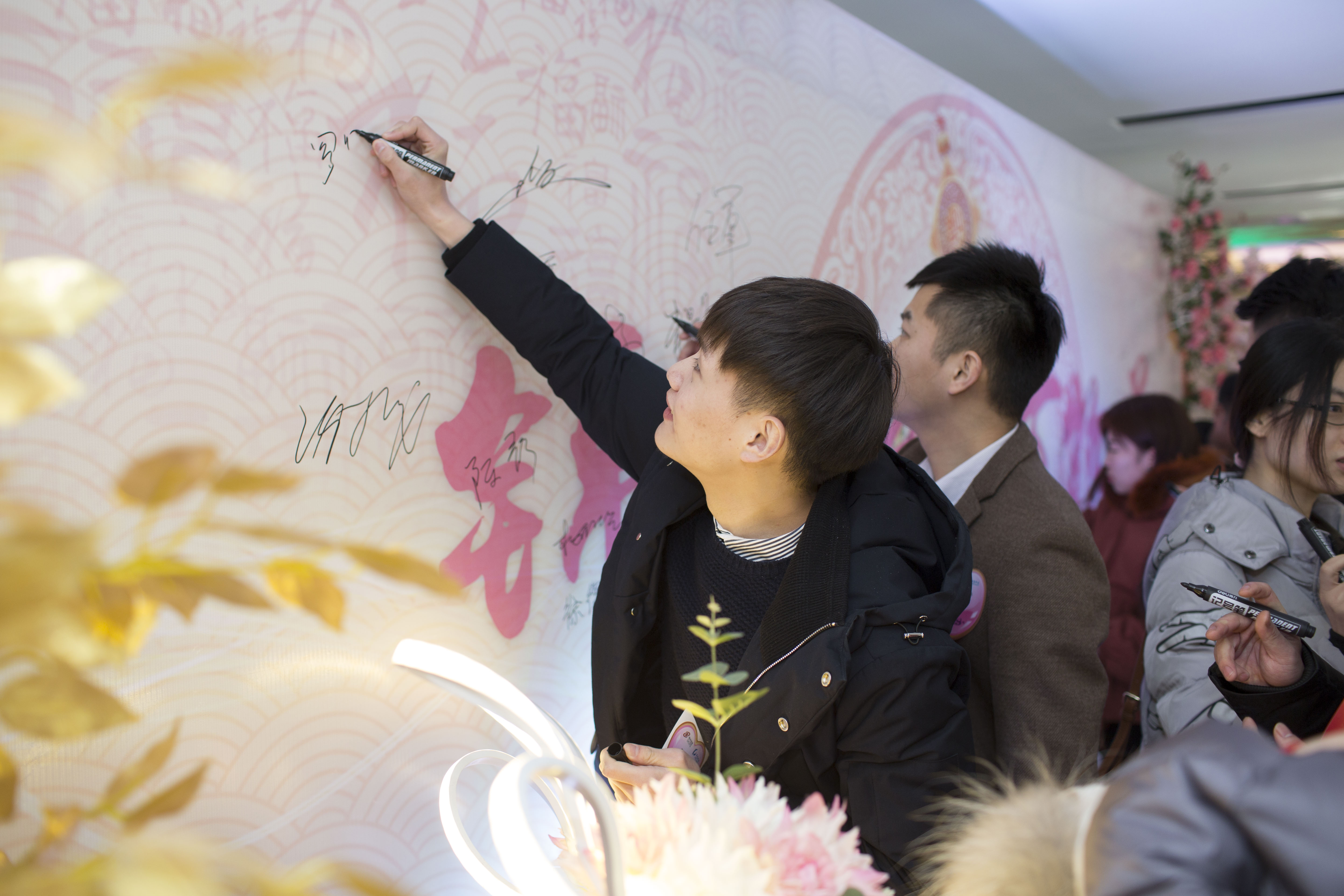 13時18分,懷著激動的心情,伴著爽朗的笑聲,大家陸續(xù)的入場,在簽到墻前簽名留念,記錄下這令人難忘的一刻。