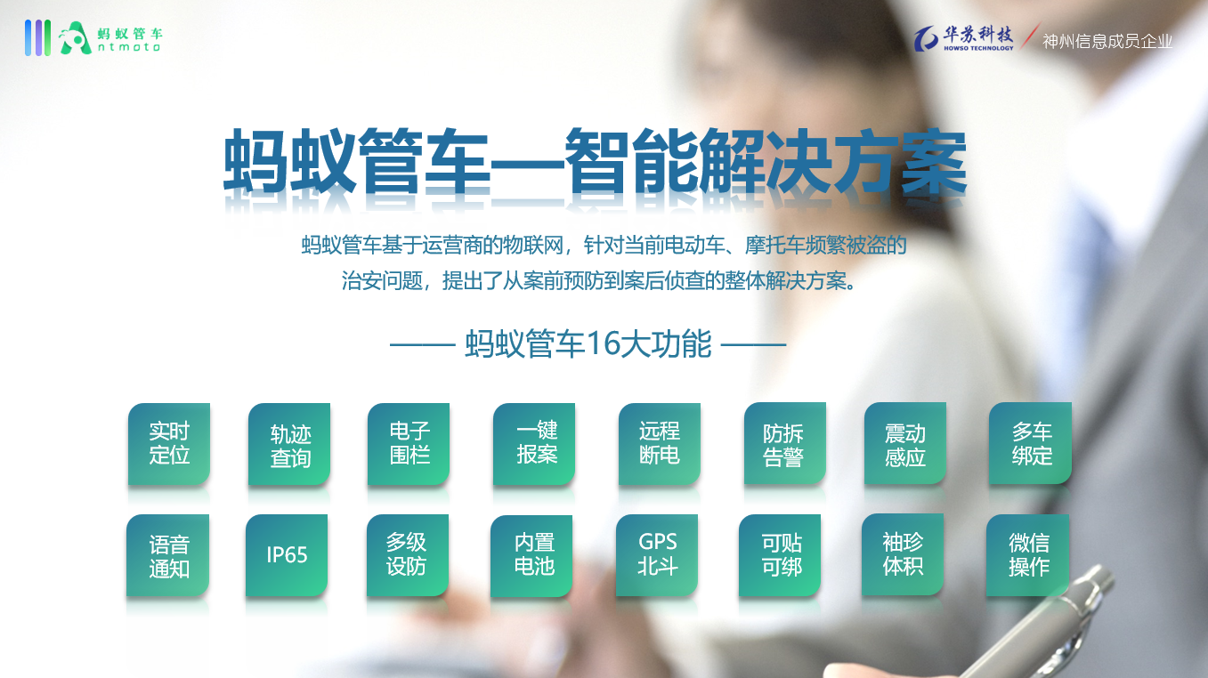 螞蟻管車基于運營商的NB-IoT物聯網,針對當前電動車、摩托車頻繁被盜的治安問題,提出了從案前預防到案后偵查的整體解決方案。
